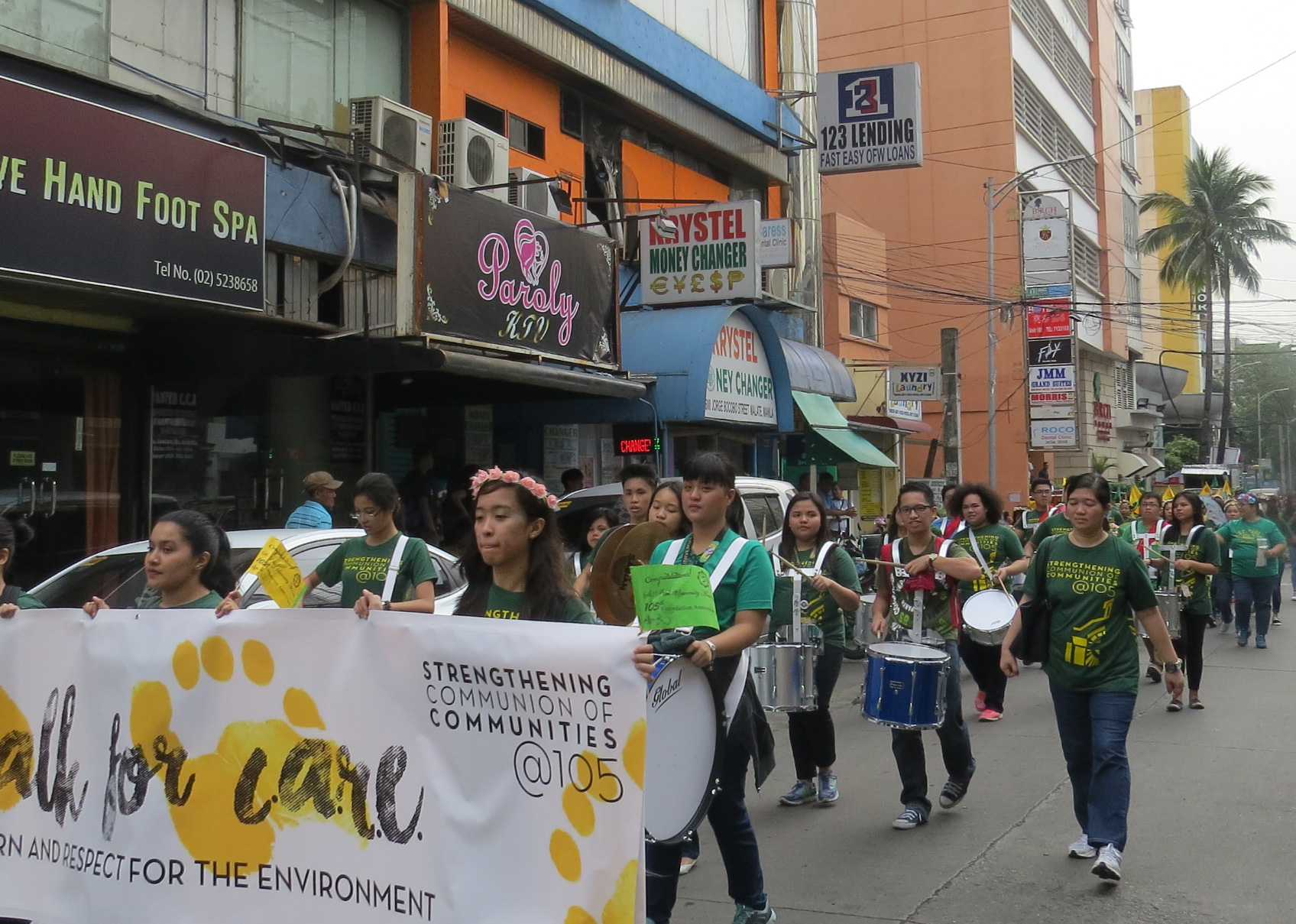 Bahay Kubo Hostel in Maria Orosa Street, is a well situated friendly place with very helpful staff…even if I did have to improvise curtains from towels for privacy in my individual room. In the morning I was woken by the sounds of drums and people marching. The hostel owner explained that it was a parade to welcome me! In fact it was a ‘Walk For Care’ showing solidarity of community concern and respect for the environment. Admirable!