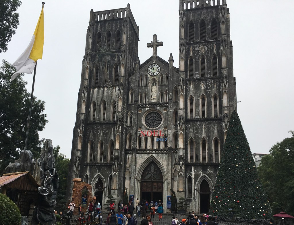 Hanoi Cathedral stopped holding an English Sunday mass many years back. The 11.00am mass in French was accompanied by an amplified acoustic guitar and choir. It was not particularly well attended, in contrast to the packed English Eucharist at St John’s Cathedral Hong Kong where it was standing room only.