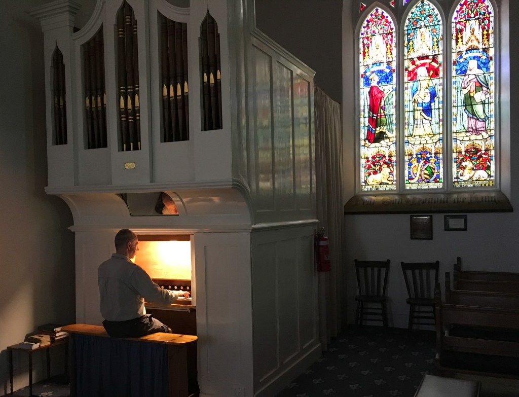 On Monday I took the Port Phillip Ferry to Portarlington where I was met by Fr George and his wife Patricia. The short stay at their lovely house with three lively dogs was the most relaxing time of the entire trip. We visited Sorrento on Tuesday. The place has changed a lot since I stayed there a few years back. The High Street is flourishing with a wide variety of shops and restaurants. George used to be Vicar at the parish church which we visited…and where I took the opportunity to play some simple improvisations on the delightful single manual organ.