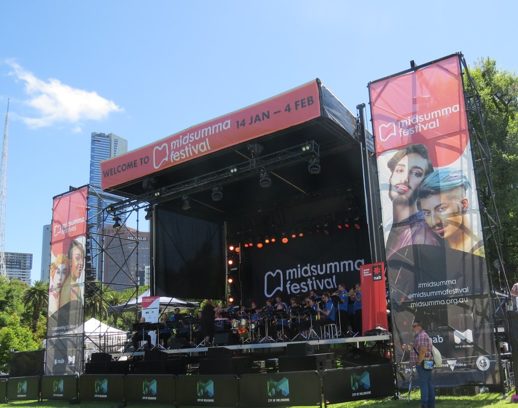 As usual, I timed my arrival in Melbourne to attend Midsumma Carnival which this year fell on Sunday 14 January. Imagine my surprise when I discovered that two of my YHA dorm-mates were in Melbourne for the very same reason. Kenton and Daniel from Hong Kong were volunteering for the event. The weather was ideal, clear sunny day but not too hot. Although there was no Vintage Men stall this year…I managed to meet up with Gordon to catch up with news of the group, of which I am an Honorary Life Member.