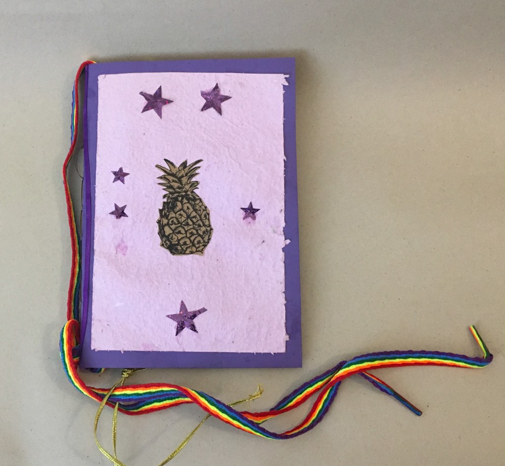 Working at funding bids for the group has been a rewarding experience. Perhaps I would feel differently if the bids had not been successful…but they were! As a consequence there’s a heap more work for me to do. But it’s not all hard graft….more of a double edged sword…because I reap the benefits of regular online communication and by taking part in creative activities like practical crafts, dance and singing. There is great joy in making something of which you can be proud. Whilst my bookmaking might not have been the best in the workshop, I am proud of the notebook I created. (see below)