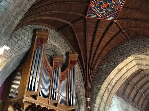 June got off to a good start with an NSDOS trip to North Wales where members had the opportunity to play the fine historical instrument which in 1998 was rebuilt and enlarged with four manuals and a new oak case by Wood of Huddersfield. It was a joy to play this fabulous organ in the magnificent space of St Asaph Cathedral. After a tasty lunch, we headed across to Mold where we had access to a totally different instrument. This two manual organ was installed by Rushworth & Draper of Liverpool in 1972. It is an interesting example of the fashion for Baroque organs. Although it has only 18 stops, it offers a wide range of possibilities. It was good to note that there is a closer link between the church and Theatr Clwyd up the road. To my shame, in all the time I worked at Theatr Clwyd, I never once set foot inside its doors. Pity…it is a beautiful, remarkably well-preserved medieval building.