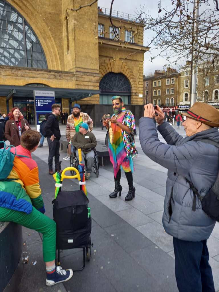 A trip to London to visit Queer Britain museum has been on the OLGBT wish list for some time. Appetite made our dreams come true with a well organised coach trip that included food and a Drag tour around King’s Cross visiting places of LGBT interest. A long day…but wonderful and memorable which we shared with younger members of the LGBT+ community including students from Keele University.