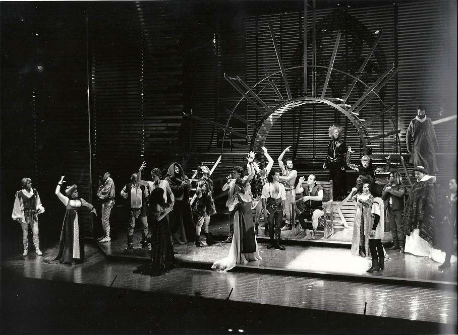 Jeanne also had a great company of singers and actors with Siobhan McCarthy in the title role, Malcolm Roberts as Lieutenant General of the Army and Peter Straker as the Bishop of Beauvais who assisted in the inquisition of Jeanne…constantly amazing audiences with his incredibly high vocal range. The set and costumes by Susan Benson were stunning as was Dave Horn’s atmospheric lighting. Robin Phillips worked wonders as Director and Anthony Bowles produced sensitive and highly effective vocal and orchestral arrangements of Shirlie Roden’s score.