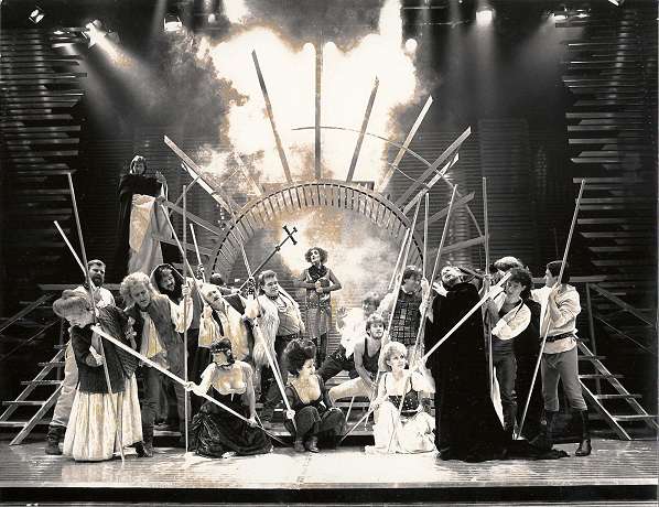 It came as a bit of a surprise to be asked by Stage Door Records if I had any photos of the 1985 Birmingham Rep production of Jeanne. This was my first big musical as a Deputy Stage Manager and I remembered it well. The show got a better reception in Birmingham than it did when it transferred to Sadlers Wells Theatre in London. Apart from normal cueing like flying and lighting, there were additional cues for smoke machines, dry ice and pyrotechnics. The technical rehearsal was a bit fraught…with me new to running a major show…but the Rep had a highly competent technical staff who saw me through. Bless them.
